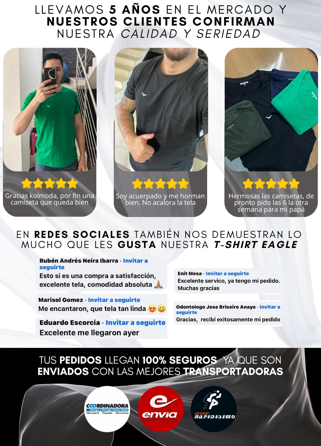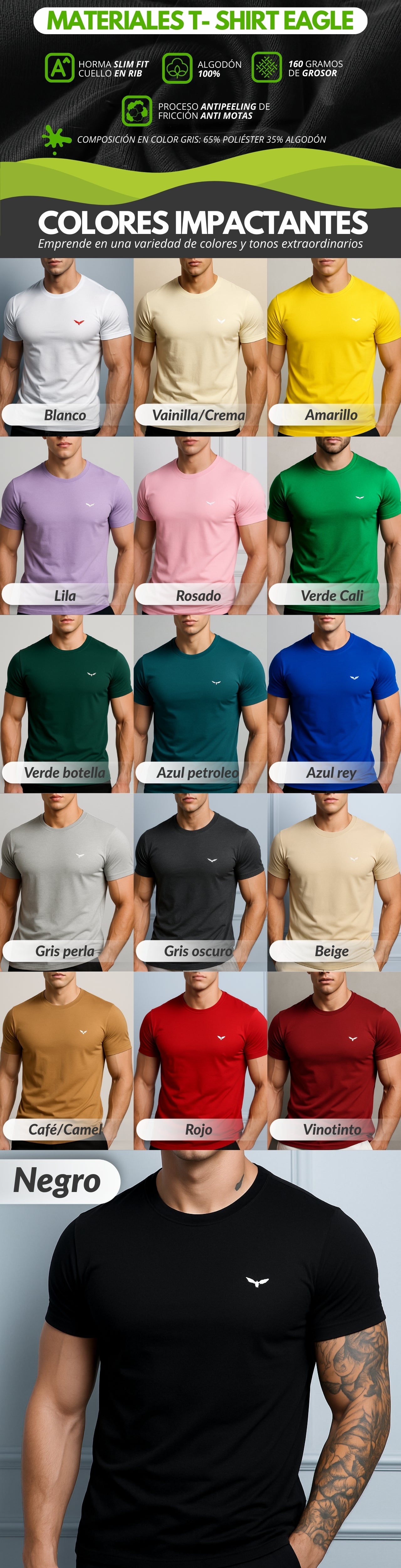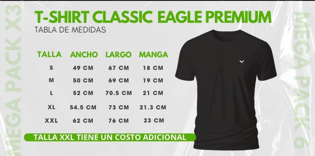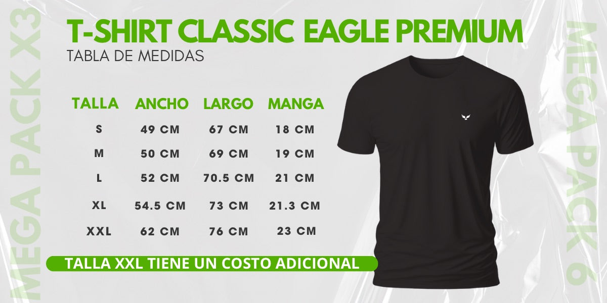 La T-shirt Eagle está hecha de 100% algodón de alta calidad (180g), con tela resistente que NO se motosea para mayor durabilidad.